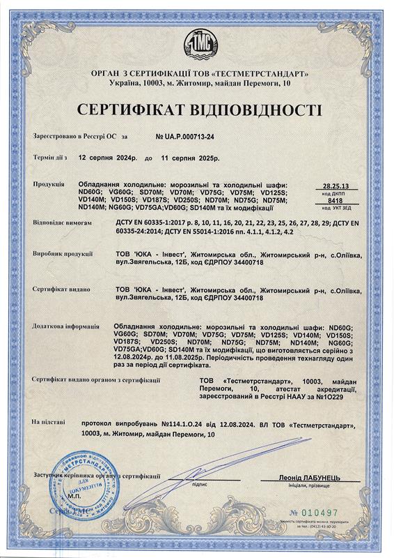 Вся продукція сертифікована в системі УкрСЕПРО.