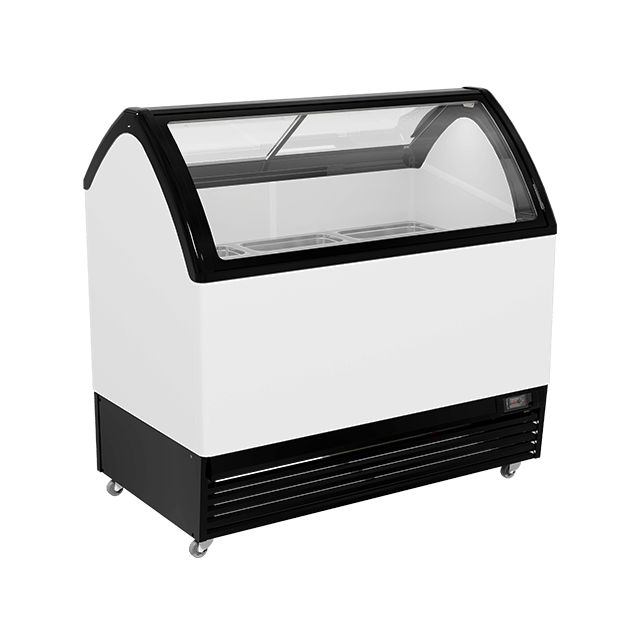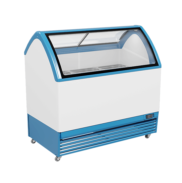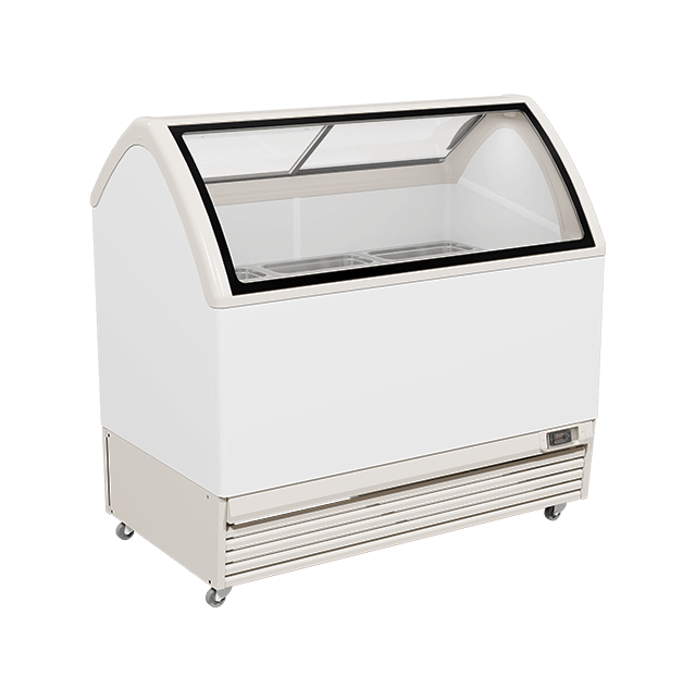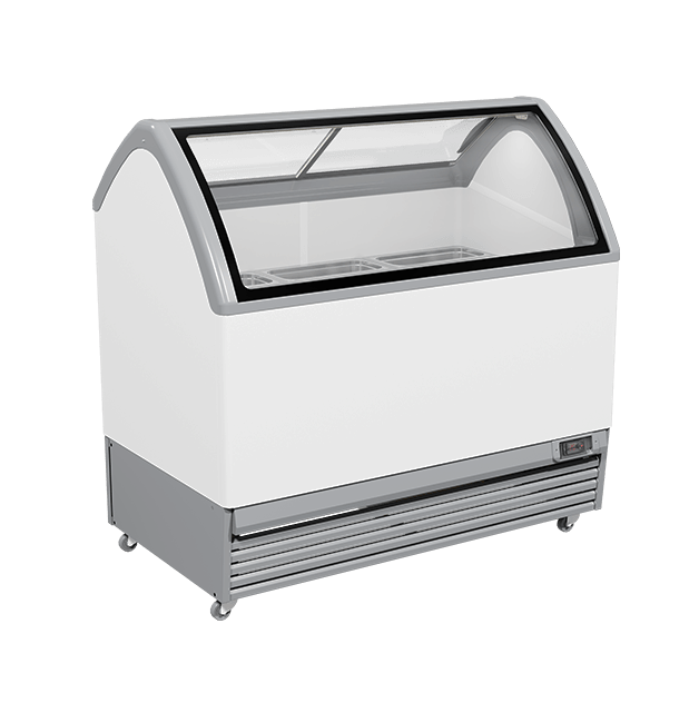 Display freezer M400Q is an exclusive model for selling ice cream (gelato). Equipped with a low-emission ISO COMFORT double glass pane, which gives the model special uniqueness, provides increased product overview and eliminates the possibility of condensation on the glass. The inner cabinet of the equipment is made of food safe metal. The display freezer is equipped with energy-saving LED lighting.