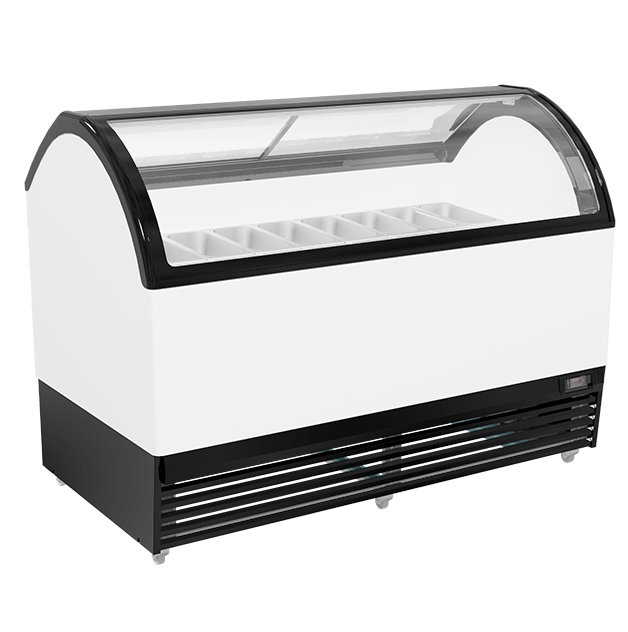 Display freezer M18Q is an exclusive model for selling ice cream (gelato). Equipped with a low-emission ISO COMFORT double glass pane, which gives the model special uniqueness, provides increased product overview and eliminates the possibility of condensation on the glass. The inner cabinet of the equipment is made of food safe metal. The display freezer is equipped with energy-saving LED lighting.